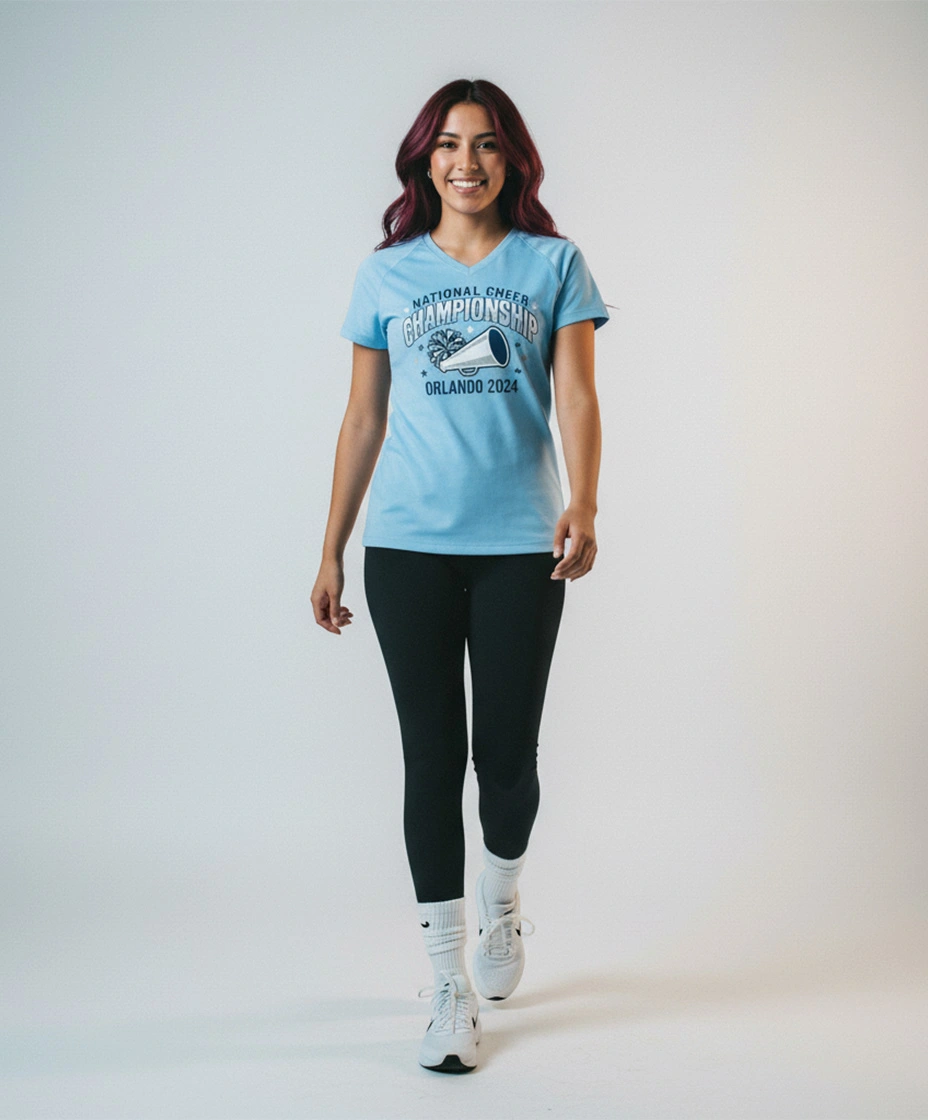Crafted from lightweight, moisture-wicking performance fabric, this athletic tee keeps your group cool, dry, and comfortable on the move.