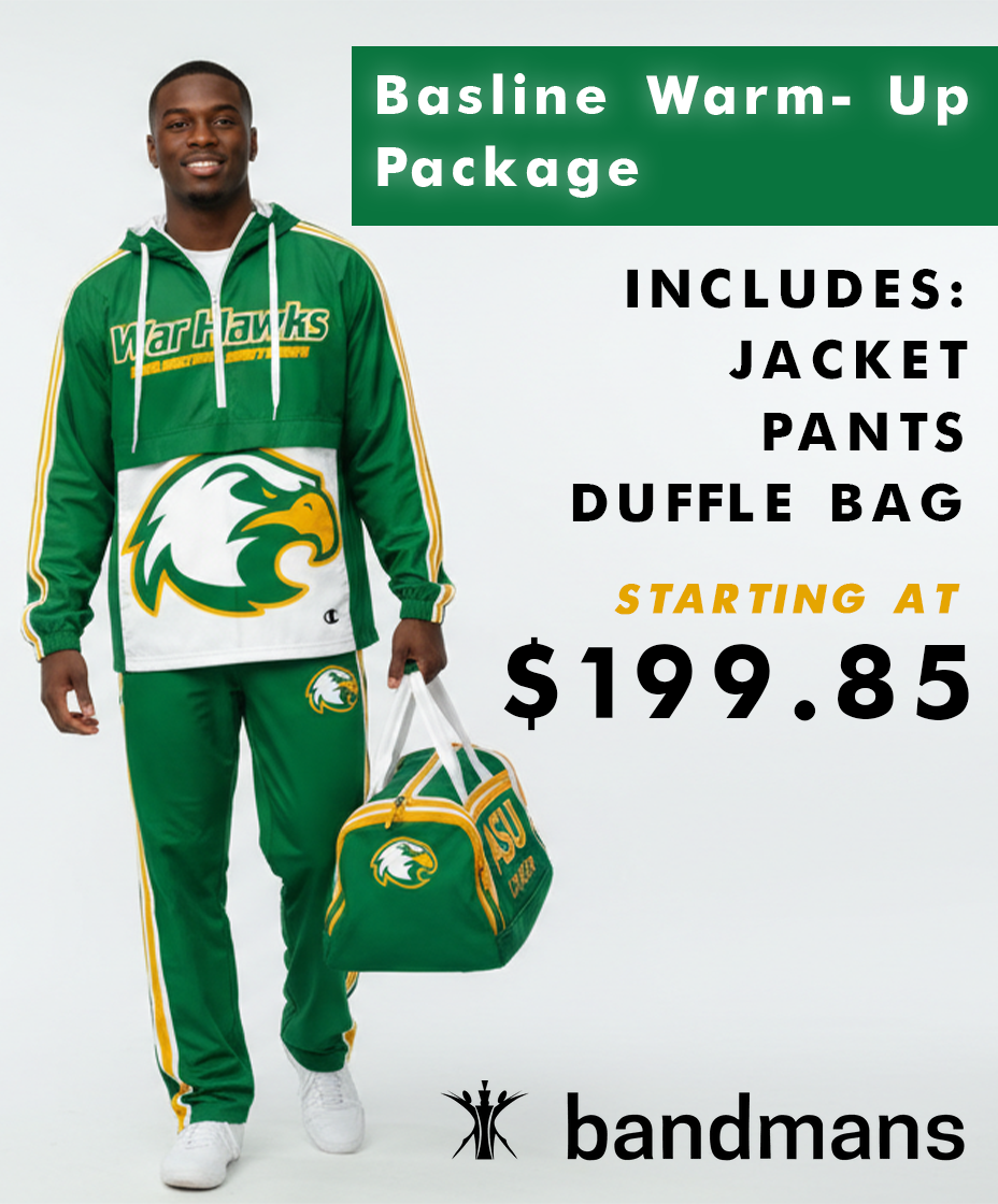 Bandmans warm-ups are designed for comfort, cohesion, and professional presentation—perfect for travel days, chilly rehearsals, and team appearances, especially our Baseline Warm-Up Set. Crafted with high-performance, weather-resistant materials, each Baseline Warm-Up Set provides the warmth and flexibility needed for pre-performance stretching and sideline energy.Â