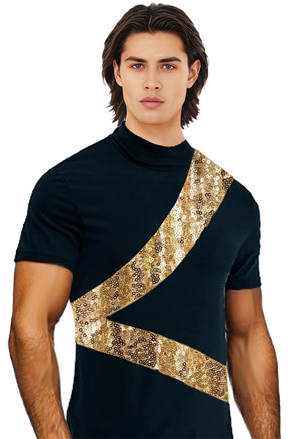 The Must Have Male Top blends plush velvet with dynamic microsequin accents, fully customizable in your choice of colors, USA-made, and delivers in 6+ weeks.