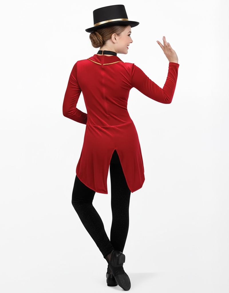 Step into the spotlight with the Bandmans Ringleader: The Greatest Show, a commanding performance costume that blends dramatic style with performance-ready comfort. Perfect for dance, color guard, majorette, and theatrical shows, this velvet tailcoat unitard ensures every move feels as bold as it looks.