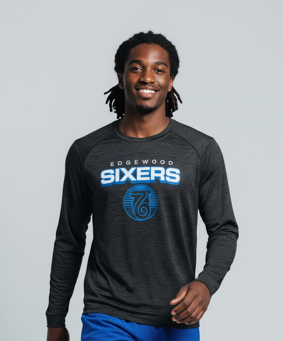 - 100% polyester heathered wicking knit