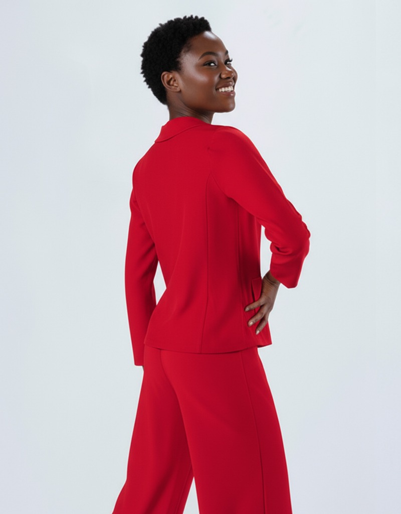 Discover the polished look and comfort of the Stretch Suit Blazer, the perfect fitted piece for uniforms, concert wear, or team staff apparel. This blazer is crafted from lightweight stretch suiting fabric (Rayon/Nylon/Spandex blend) that ensures exceptional mobility without sacrificing professional style. Designed for a flattering silhouette, it features button closures and elegant princess seams in the front and back. The blazer maintains a sleek appearance with faux pockets and is completely Glitter free!