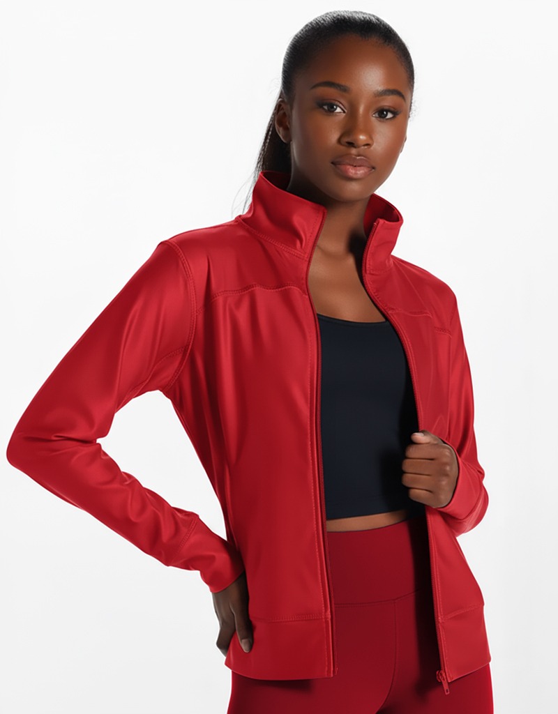 Perfect for teams, studios, and rehearsals, this polyester/spandex blend jacket moves with you while maintaining its polished, athletic look. Soft, durable, and breathable, it’s ideal for layering over uniforms or pairing with matching joggers for a complete warm-up outfit.